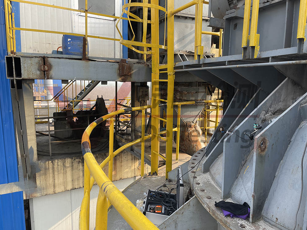 振動(dòng)傳感器吸附于主軸靠近旋轉(zhuǎn)體部分正上方或是正側(cè)方,激光傳感器測(cè)試主軸轉(zhuǎn)速。通過振動(dòng)分析,轉(zhuǎn)速檢測(cè),儀器主機(jī)精確顯示試重角度。
