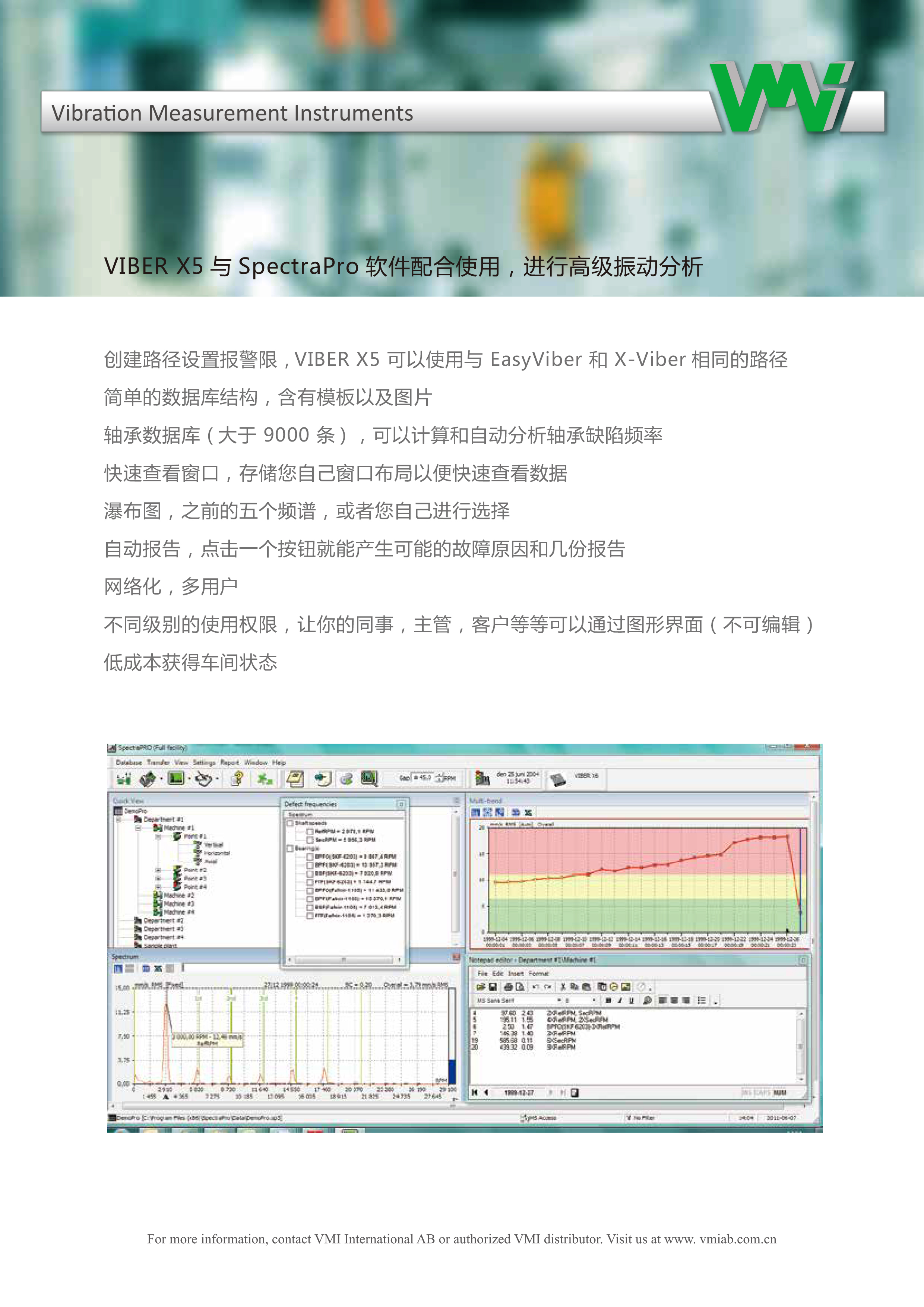 世界領先的智能設計與開發(fā)VMI 開發(fā)并制造振動測量儀器、機器狀態(tài)監(jiān)測設備和軟件,同時考慮到用戶的需求與功能。我們的產(chǎn)品建立在 40 年的經(jīng)驗基礎上開發(fā),旨在實現(xiàn)所有必要的參數(shù),以進行可靠的機器分析。